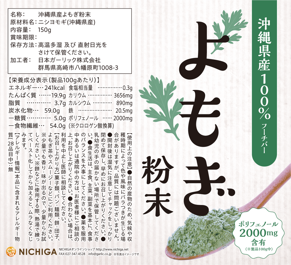 よもぎ粉末のパッケージ表紙デザインです。